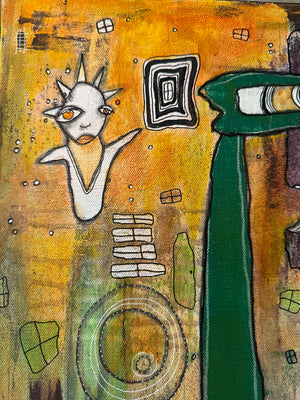 Intuitive mixed media art painting on canvas. Root and Crown Chakra spiritual celestial artwork by C.Cambrea.